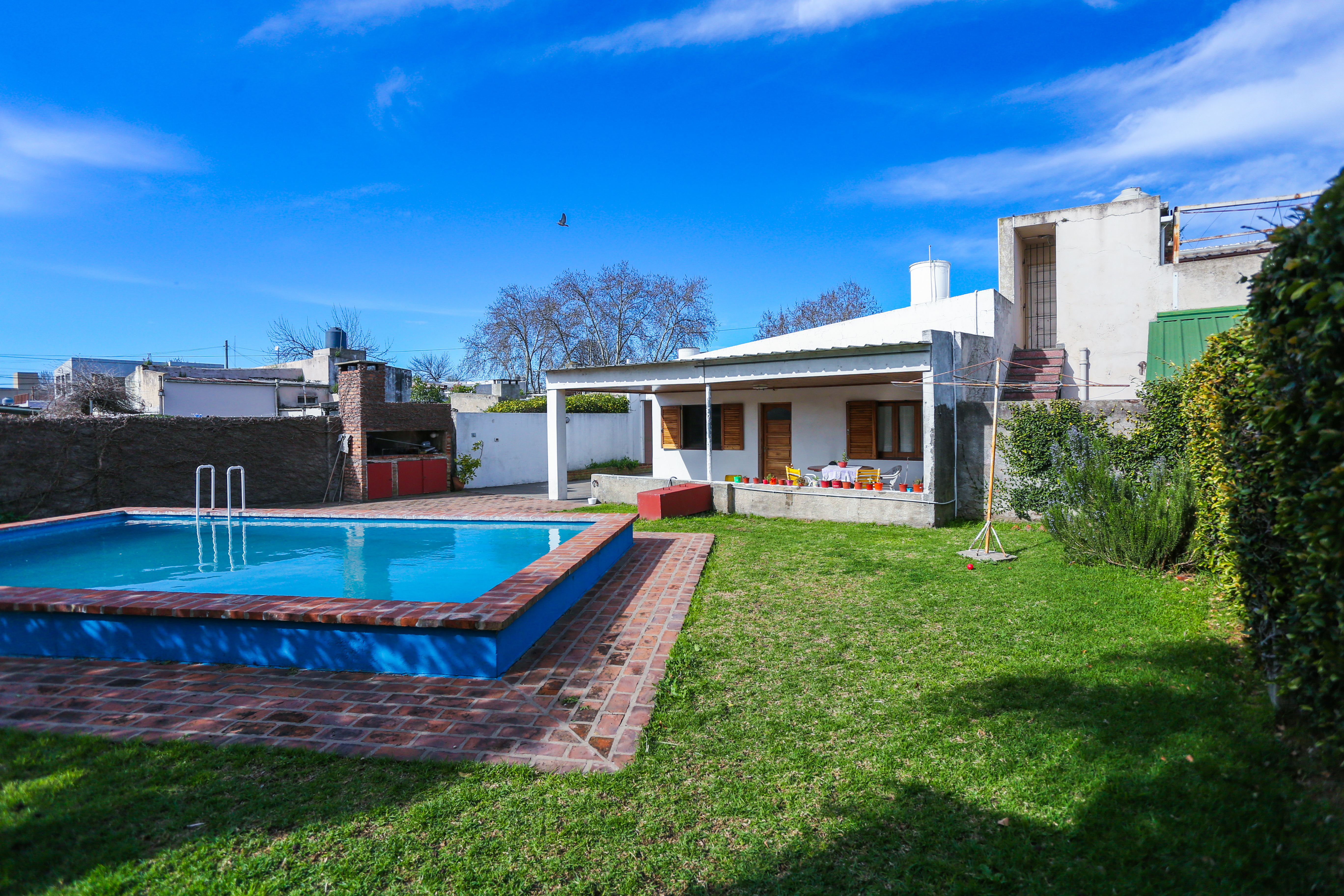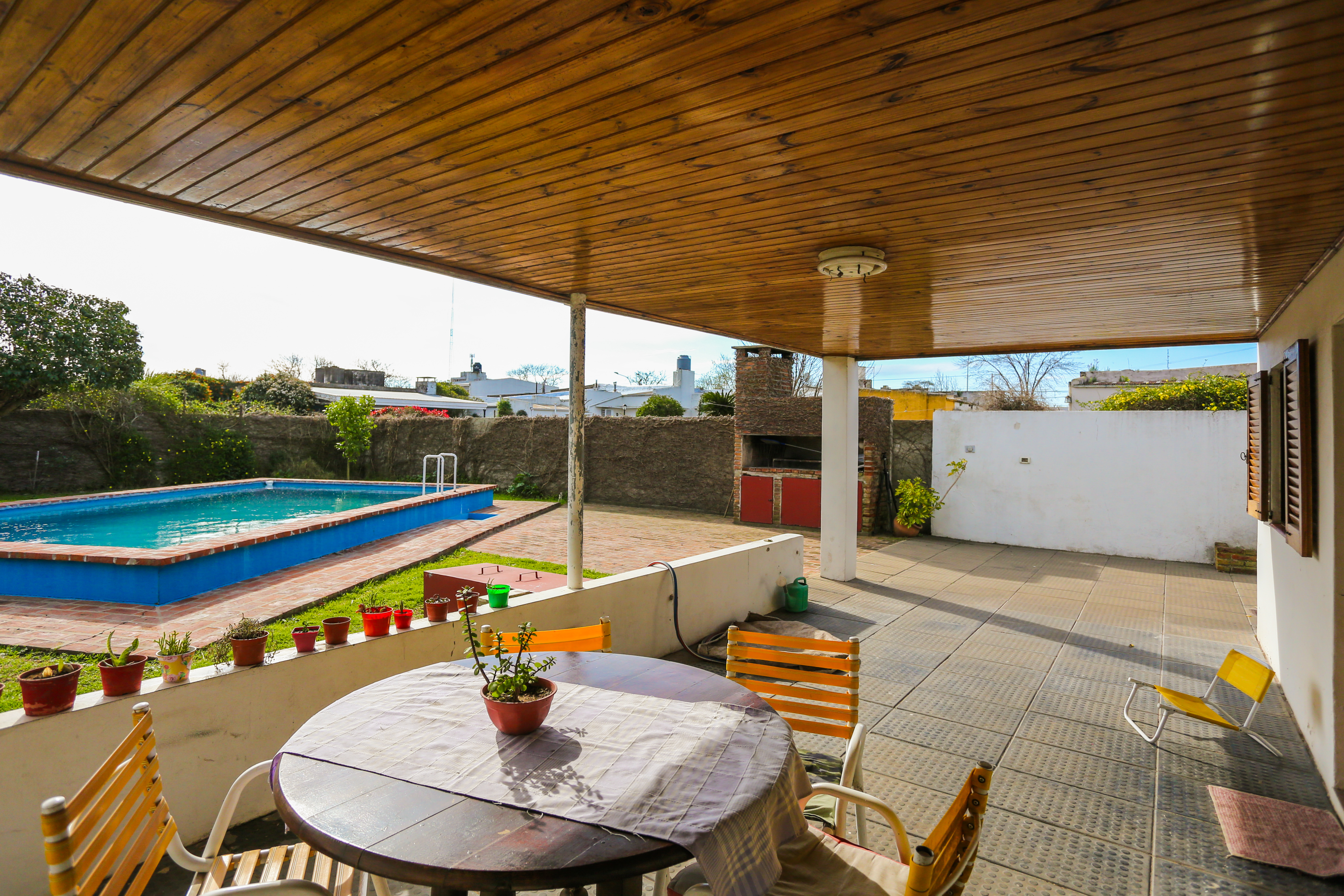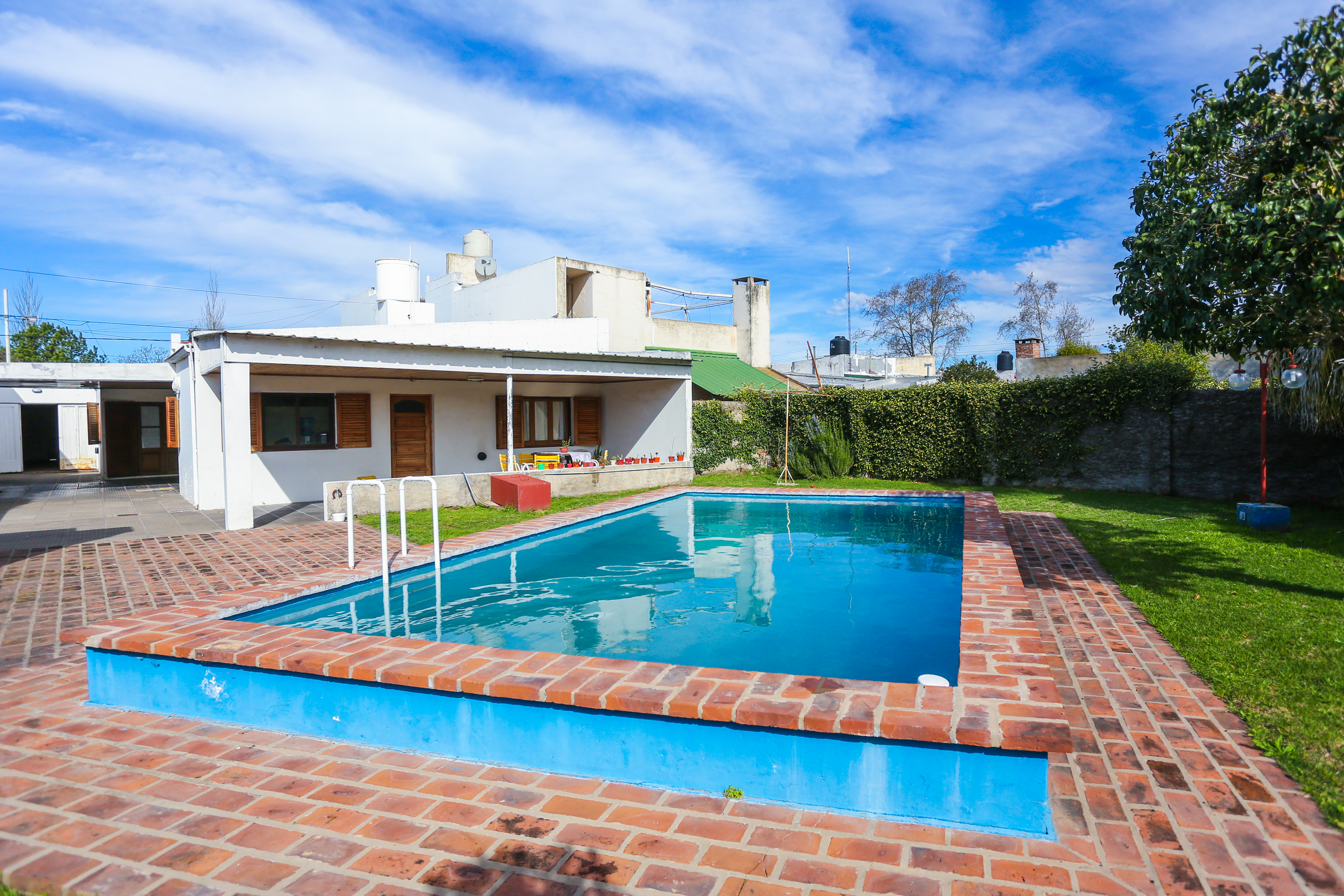 Distribuida en una sola planta, posee 3 dormitorios, 2 baños, estar, living, comedor diario, cocina separada, lavadero, patio de luz, galería, jardín con espacio semicubierto junto a la pileta y parrilla. Garage de doble acceso de grandes medidas.