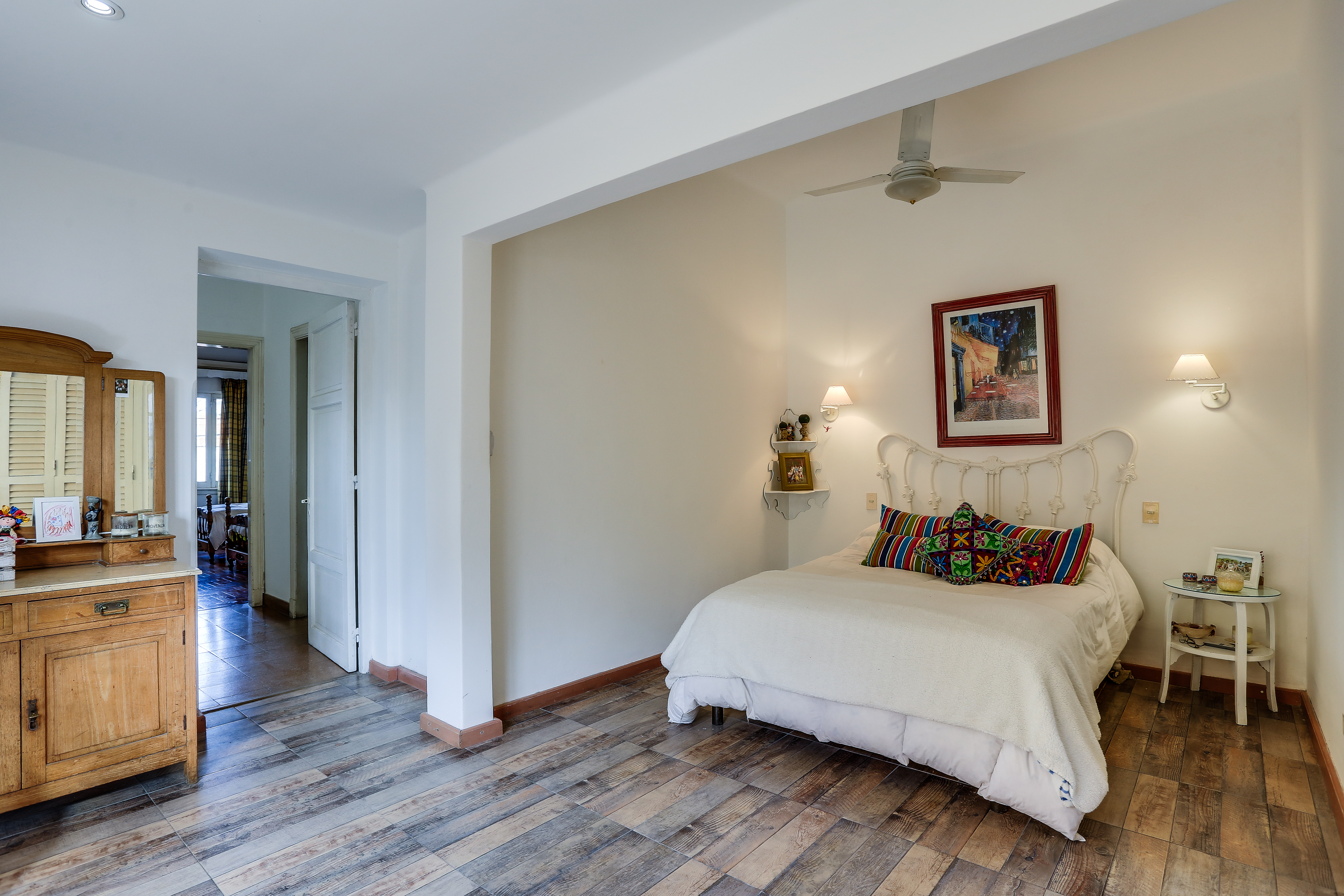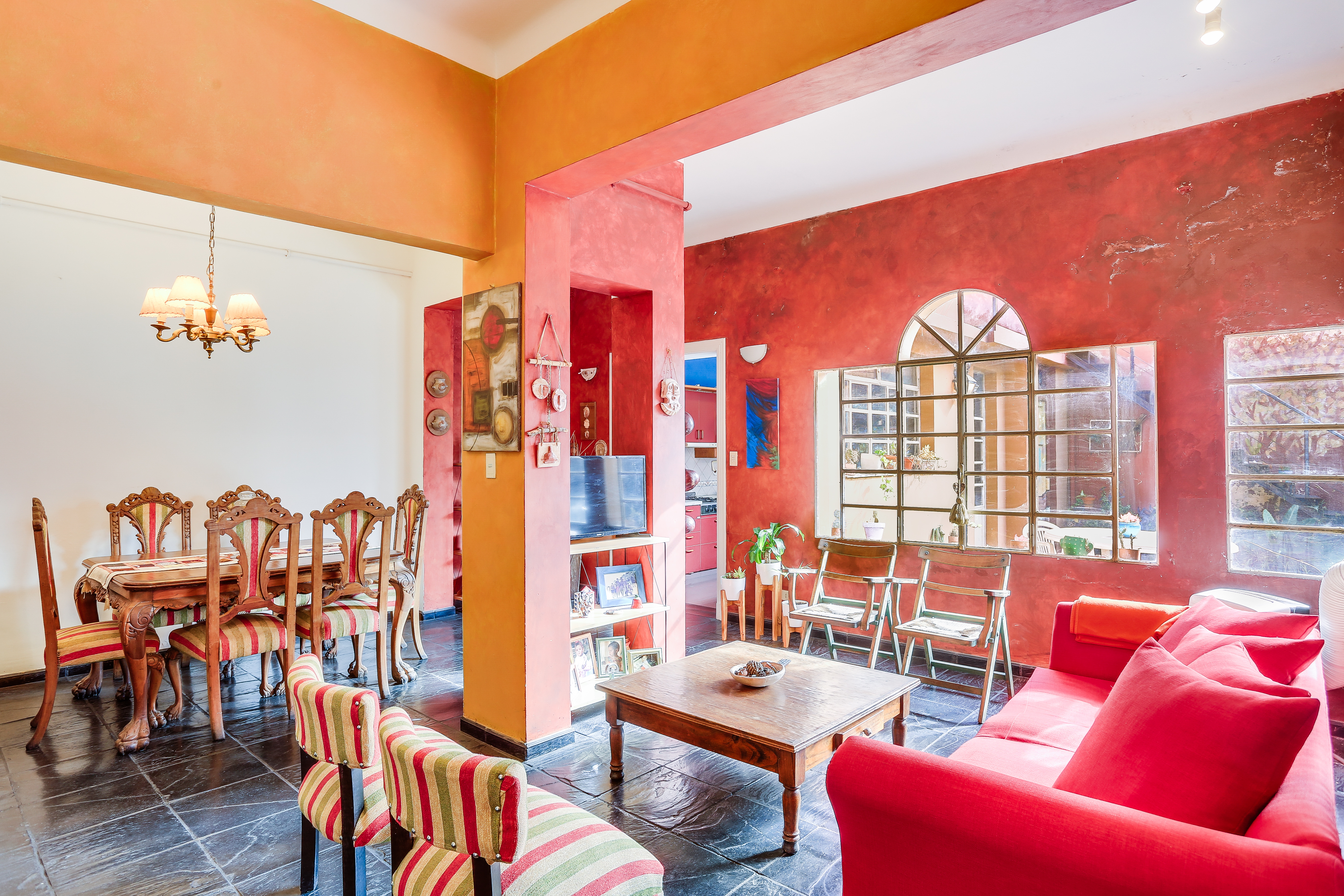 Estar y comedor, con acceso a una galería semicubierta, living separado, patio con parrilla y una terraza con vista a la habitación principal y al patio, garage para un auto.