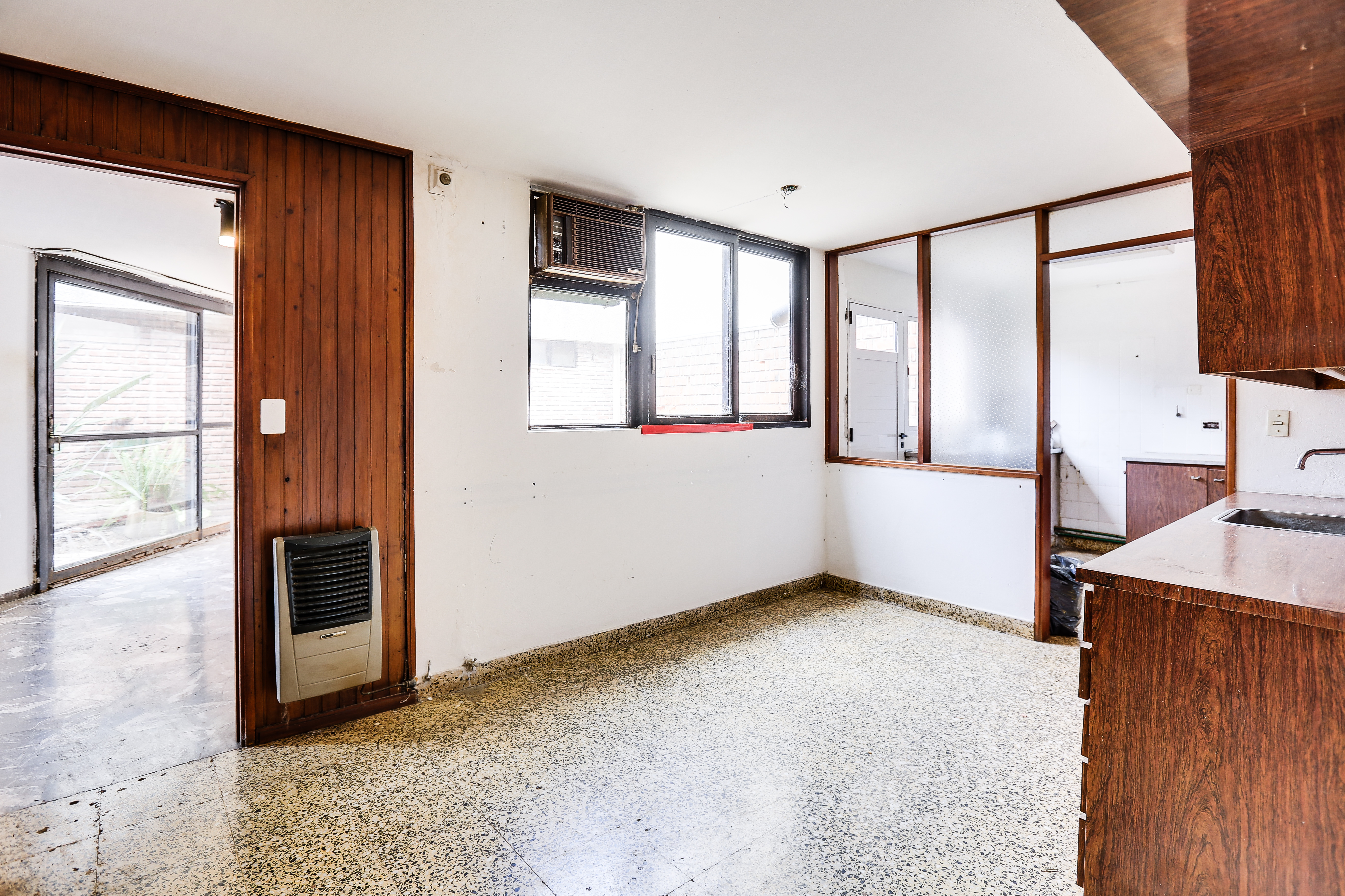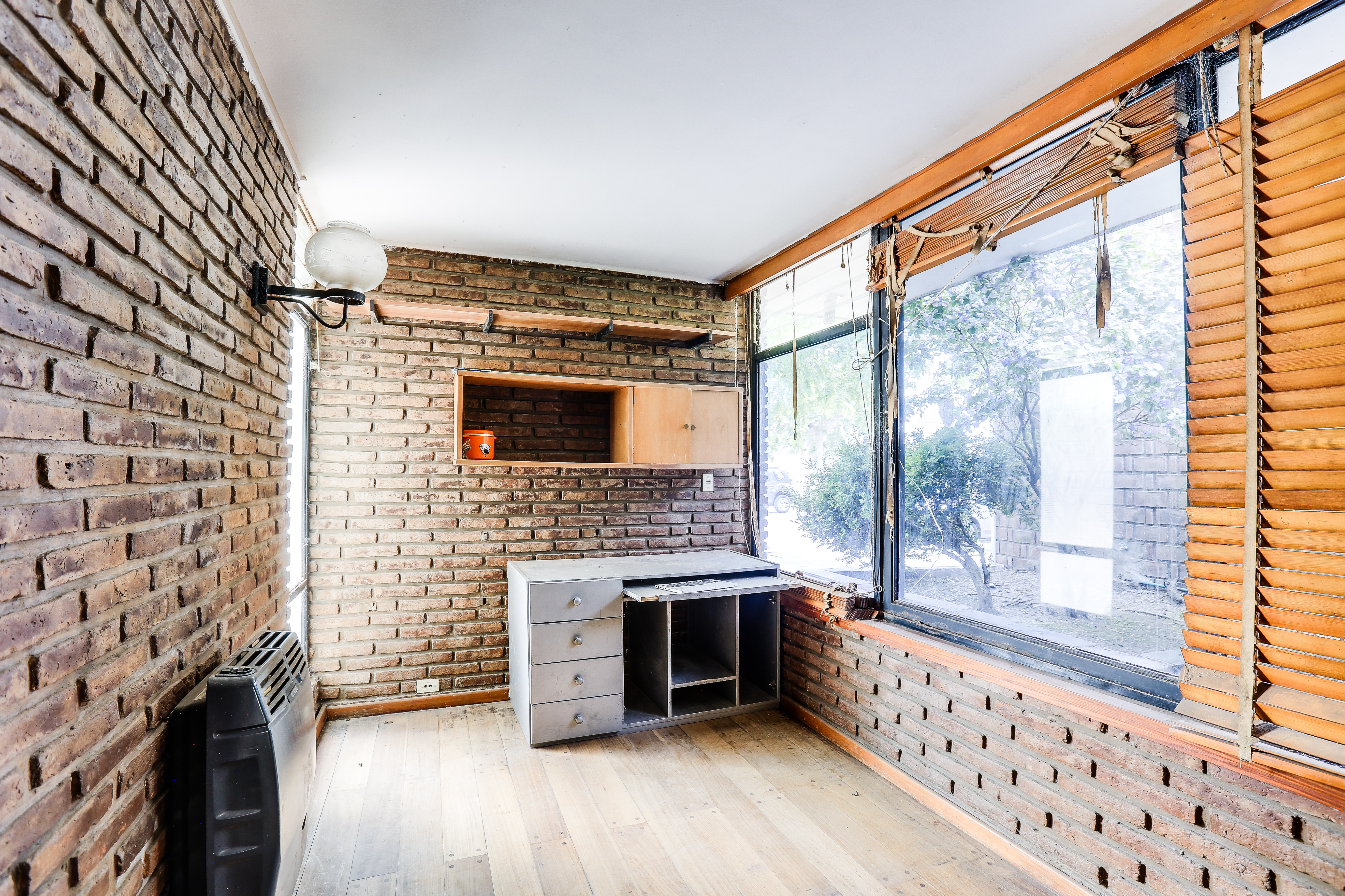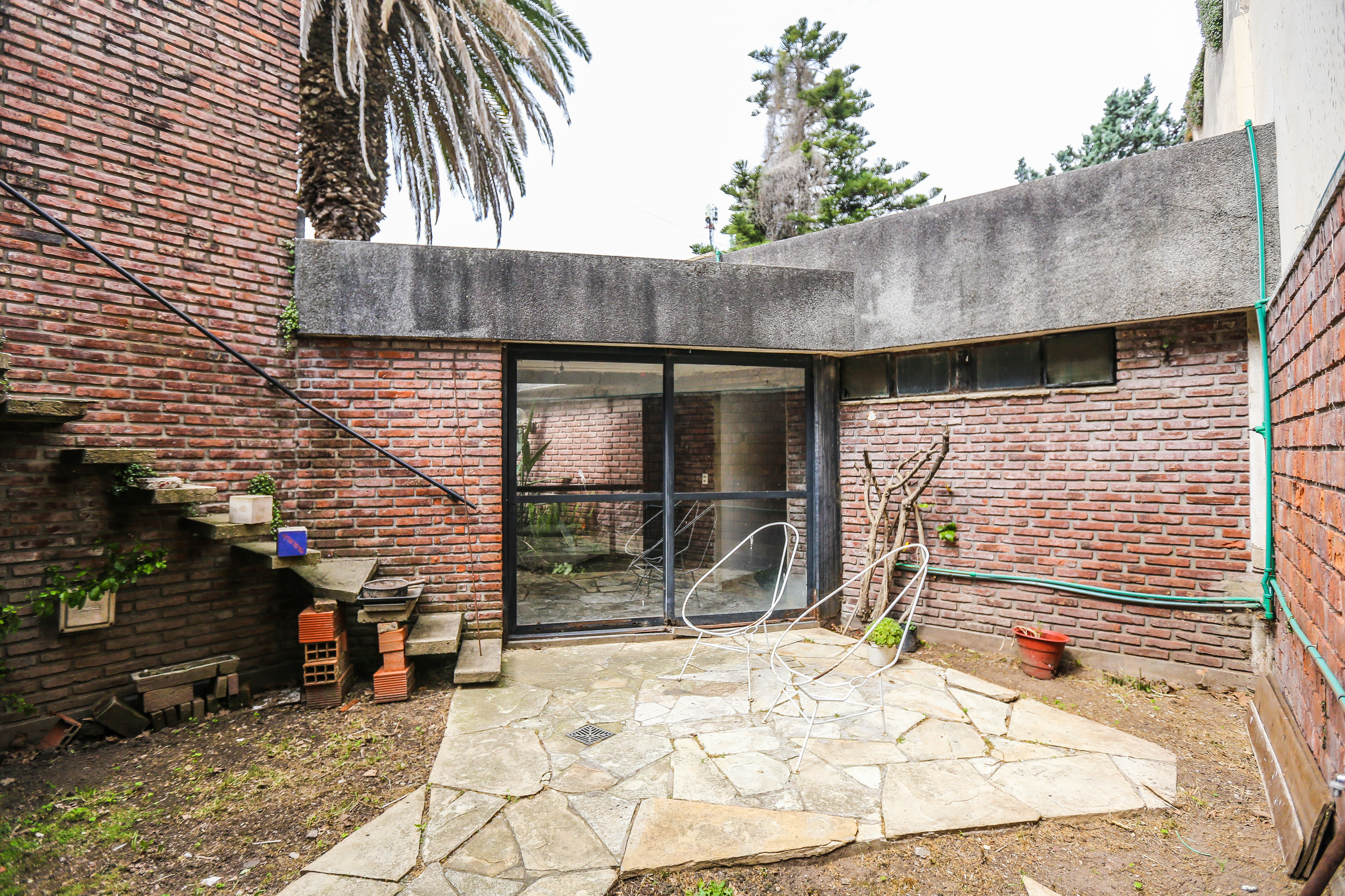 Cuenta con hall de ingreso, un escritorio, toilette. Cocina amplia separada, lavadero, living comedor, garage para dos autos. El sector de habitaciones esta separado de los espacios sociales por un corredor iluminado por ventanales de ambos lados, que de un lado lleva a un patio de luz interno con acceso a terraza, y por el otro lateral conecta con un amplio jardín con parrilla y espacio de guardado o posible taller.