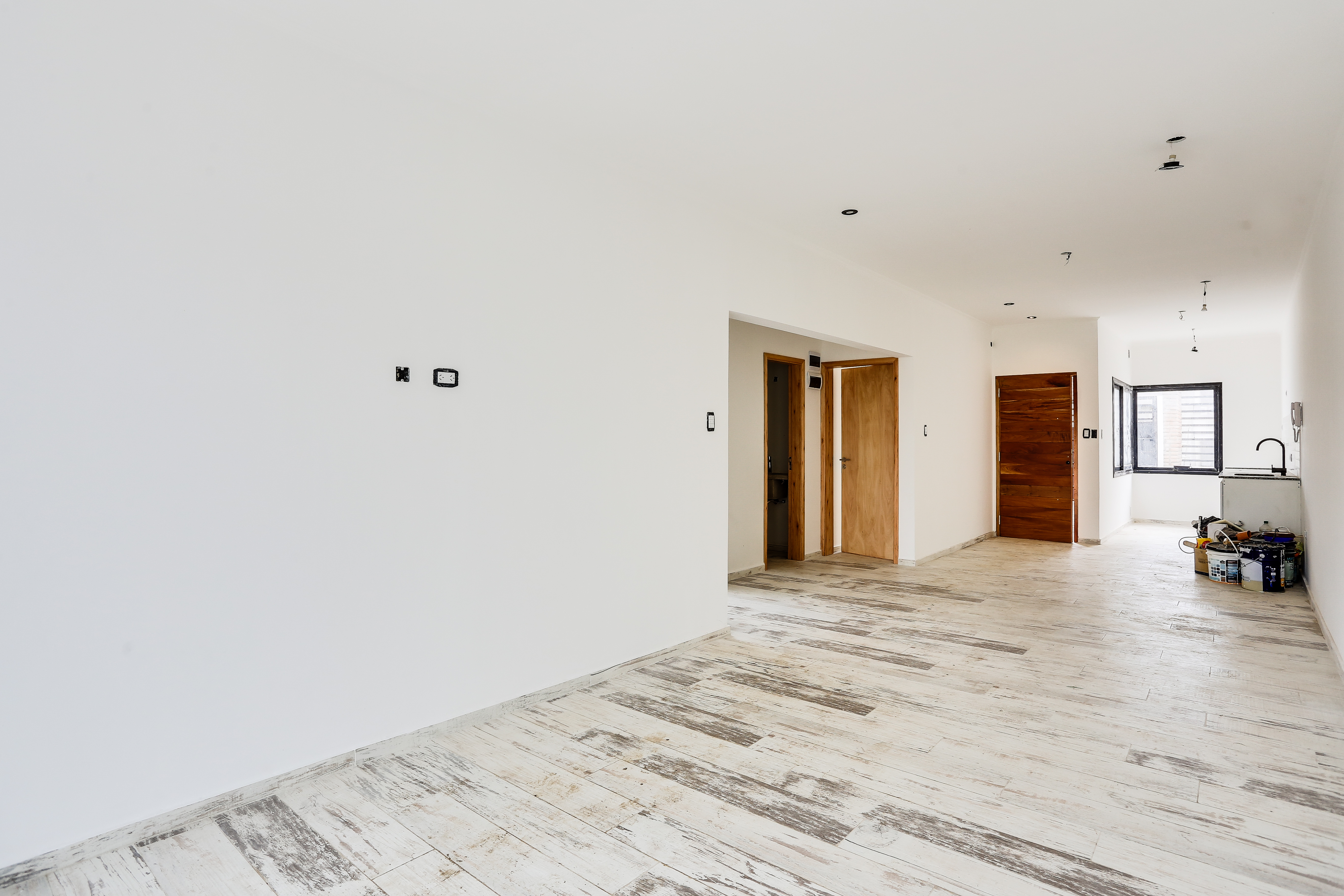 Cocina semi integrada, comedor y living integrados, dos dormitorios, baño completo, patio de luz, galería con parrilla, jardín y cochera descubierta para 1 vehículo.