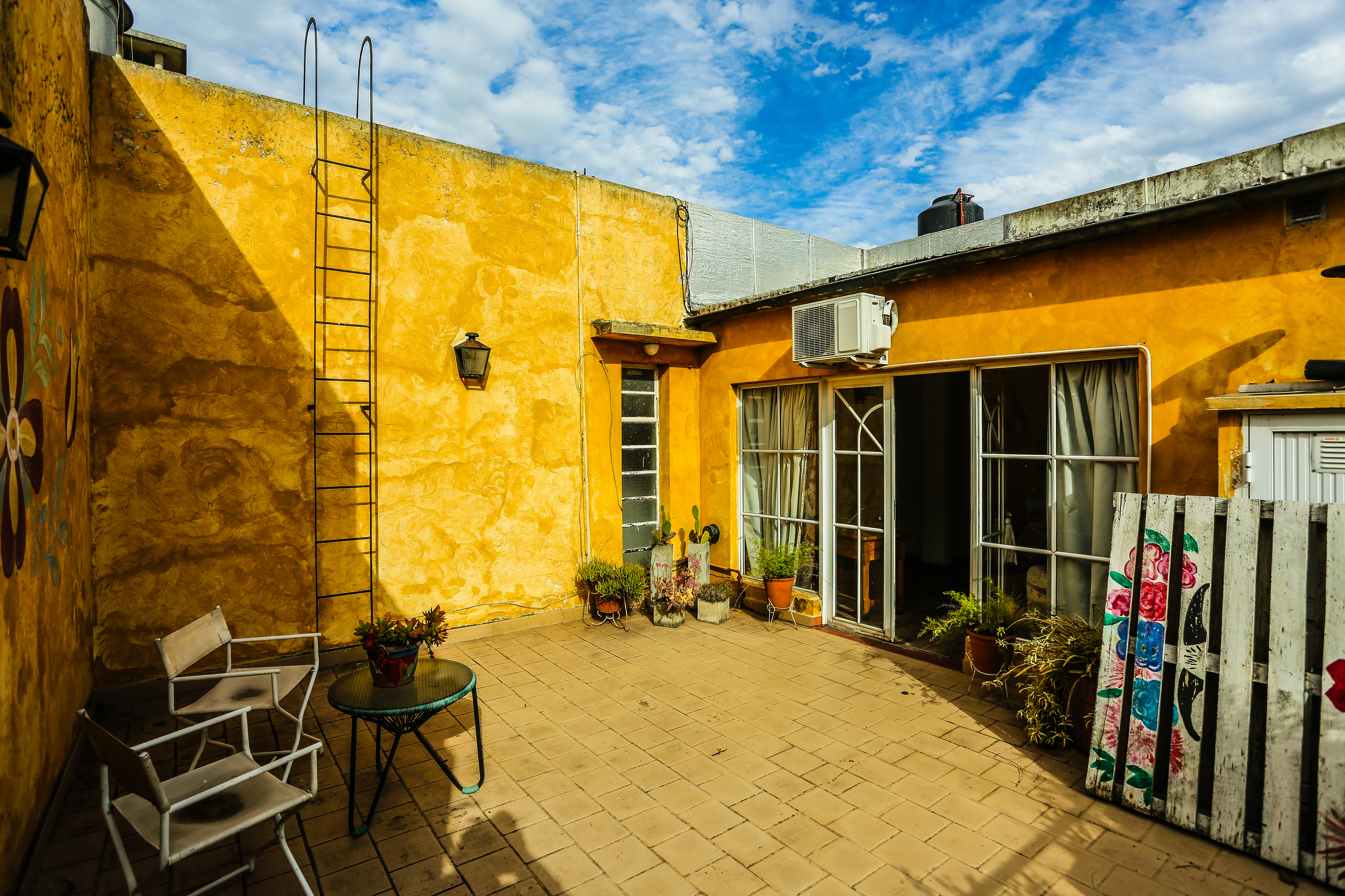Estar y comedor, con acceso a una galería semicubierta, living separado, patio con parrilla y una terraza con vista a la habitación principal y al patio, garage para un auto.