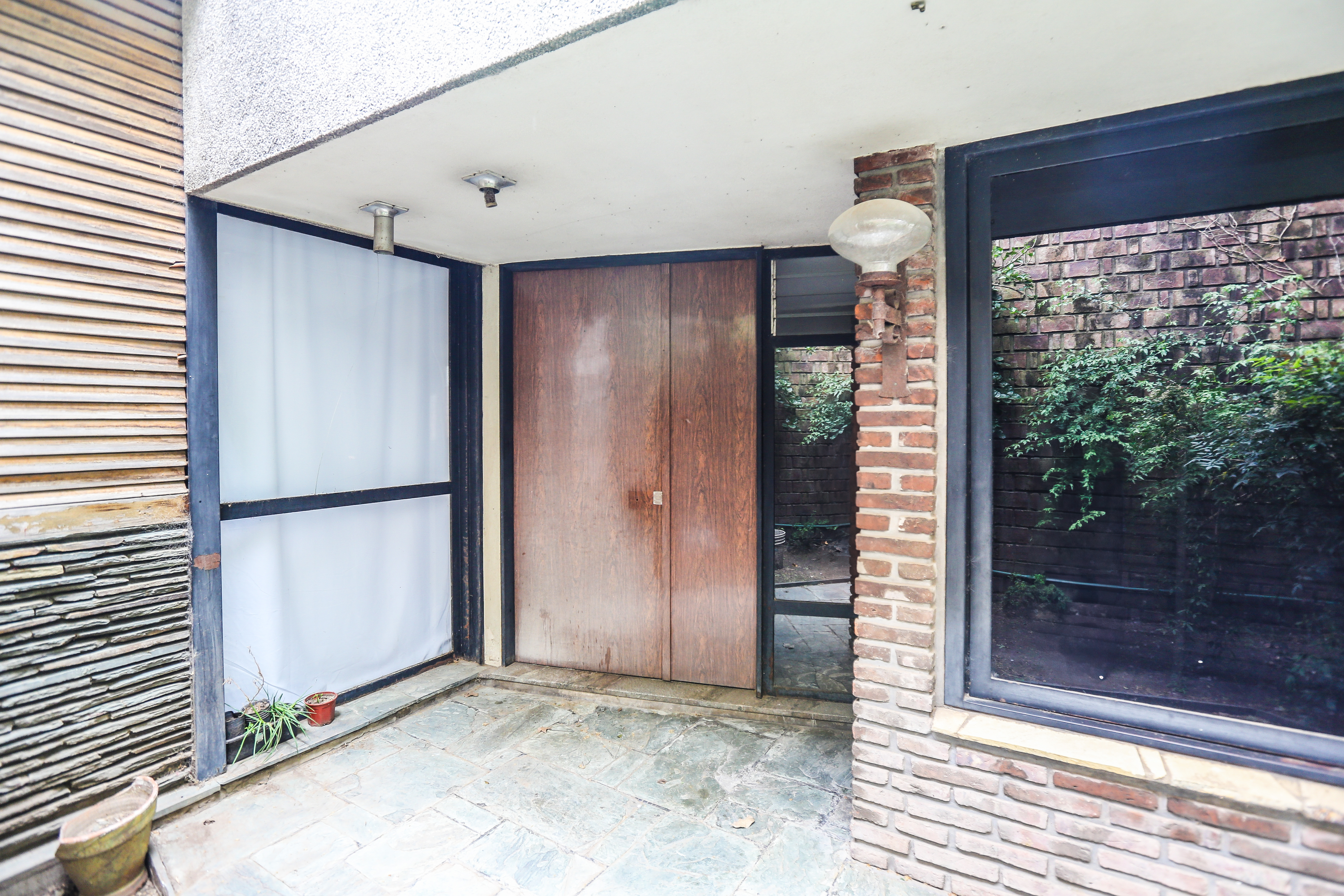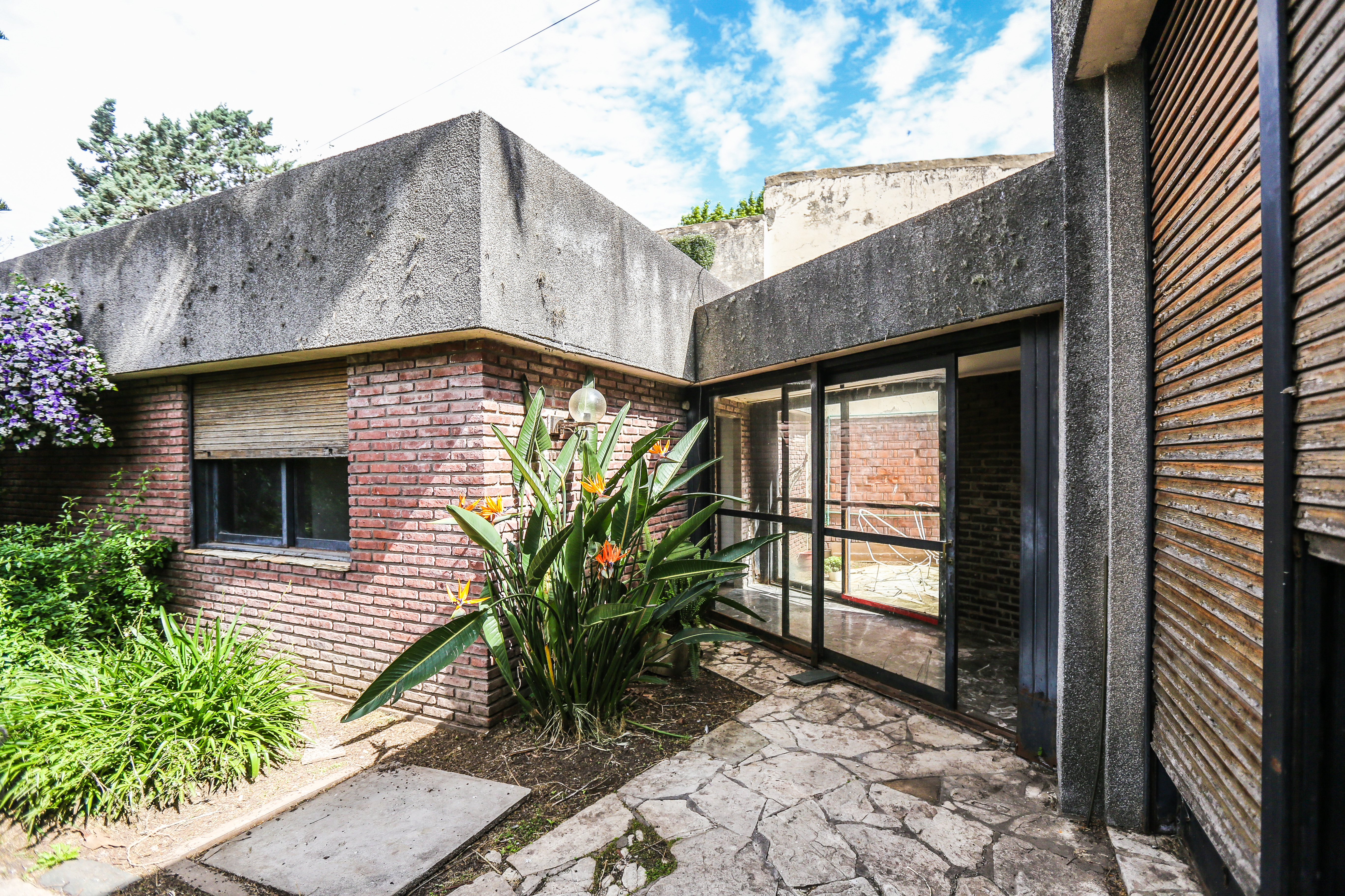 Cuenta con hall de ingreso, un escritorio, toilette. Cocina amplia separada, lavadero, living comedor, garage para dos autos. El sector de habitaciones esta separado de los espacios sociales por un corredor iluminado por ventanales de ambos lados, que de un lado lleva a un patio de luz interno con acceso a terraza, y por el otro lateral conecta con un amplio jardín con parrilla y espacio de guardado o posible taller.